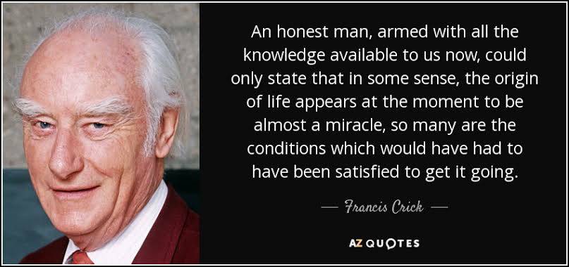 Stopp pressen! Den nakne uttalelsen på egen hånd ser ut til å antyde at en naturalistisk opprinnelse i livet er umulig. Noble er klar over dette, og han vil ikke gjøre denne innrømmelsen. Så han legger til: