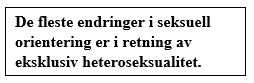 Antall mennesker som har endret seg i retning av eksklusiv heteroseksualitet, er større enn dagens antall bifile og homofile kombinert. Med andre ord, er ex-homofile flere enn nåværende homofile.